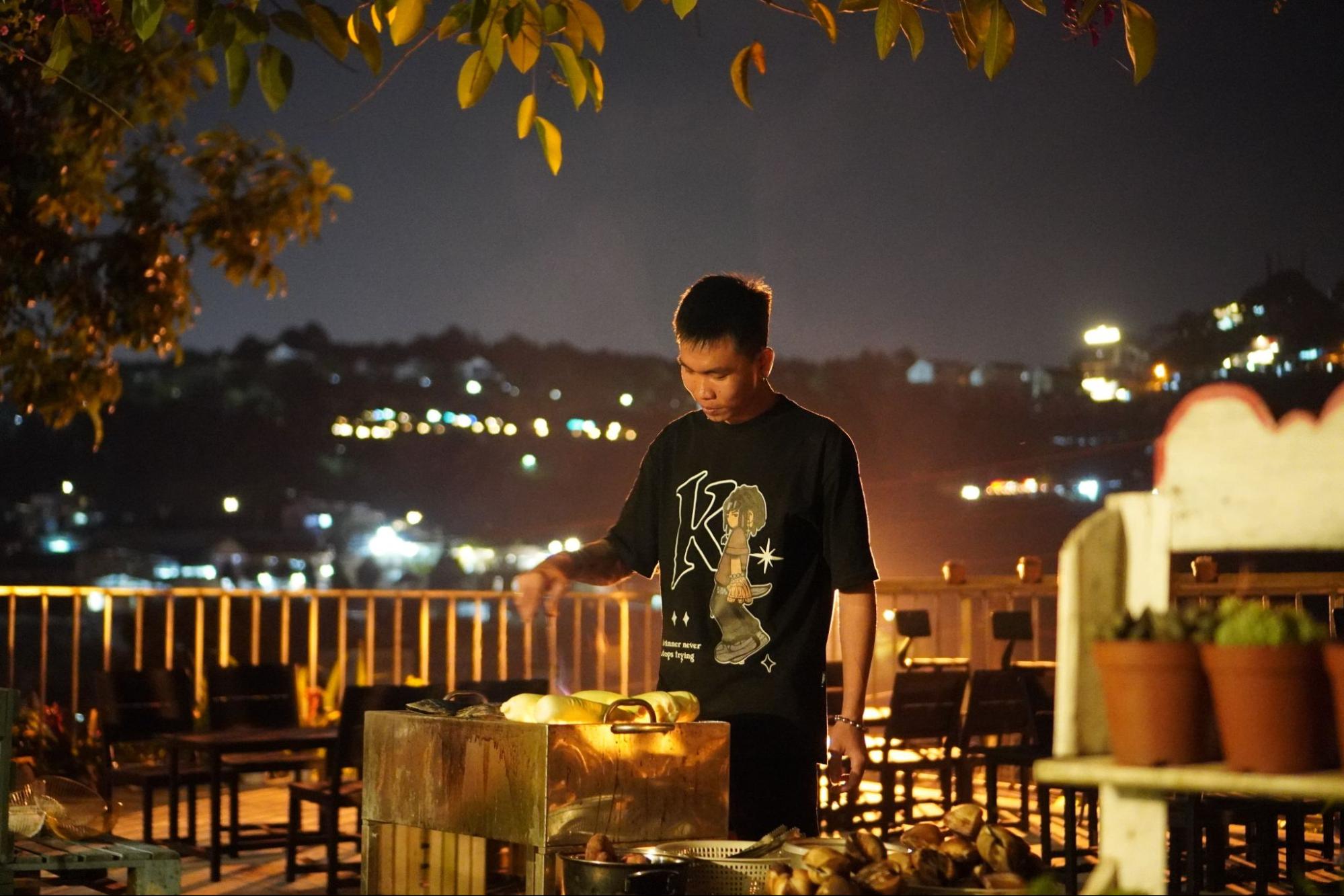 Nếu bạn theo dõi facebook của Gió, bạn sẽ thấy những khoảnh khắc du khách tụ tập ngồi trò chuyện, nướng BBQ ngoài trời. Rôm rả và rất thoải mái vì không gian rộng, đồ ăn ngon. Tại đây, homestay có nhận chuẩn bị đồ ăn cho khách ăn uống. Đảm bảo đồ ăn vừa ngon, vừa sạch, chế biến đậm chất người Đà Lạt.
