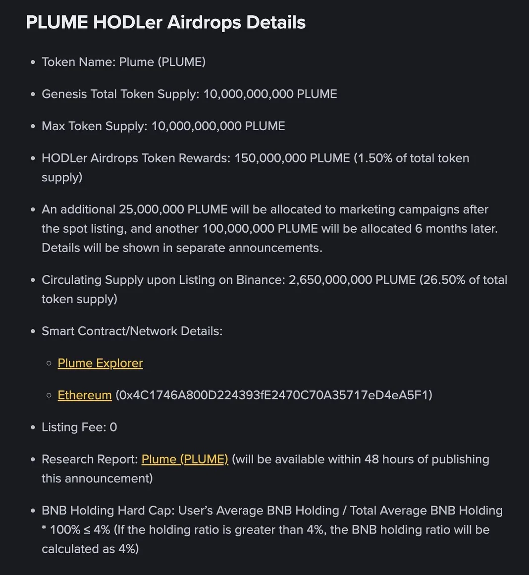 Binance thông báo dự án thứ 32 trên HODLer Airdrop – Plume (PLUME)
