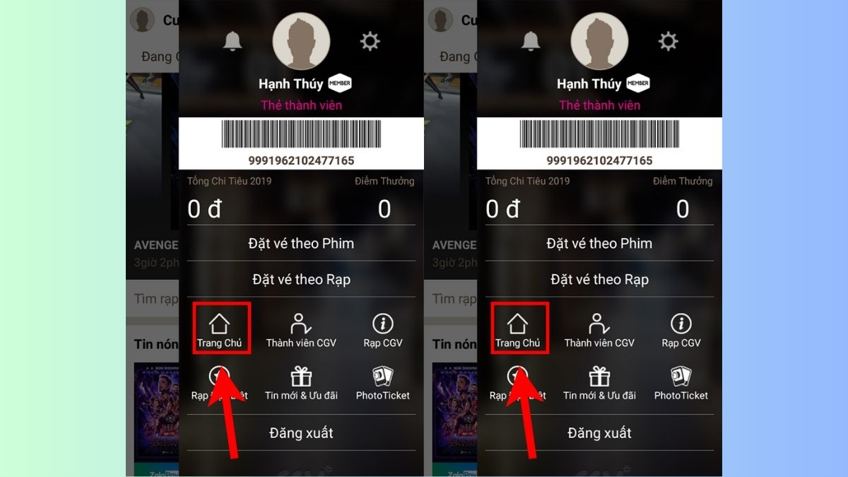 Sau khi tạo tài khoản thành công, giao diện trang cá nhân sẽ hiện ra. Chọn ‘Trang chủ’ để quay về màn hình chính của ứng dụng.