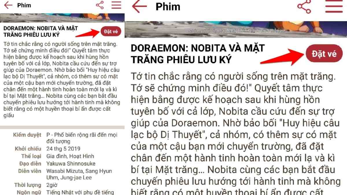 Bước 3: Chọn bộ phim mà bạn muốn xem bằng cách nhấn vào hình ảnh của nó. Trang thông tin chi tiết về bộ phim sẽ hiển thị, bao gồm trailer, nội dung tóm tắt, diễn viên, thể loại, ngày khởi chiếu, độ tuổi, thời lượng và ngôn ngữ. Nhấn ‘Đặt vé’ để tiếp tục.