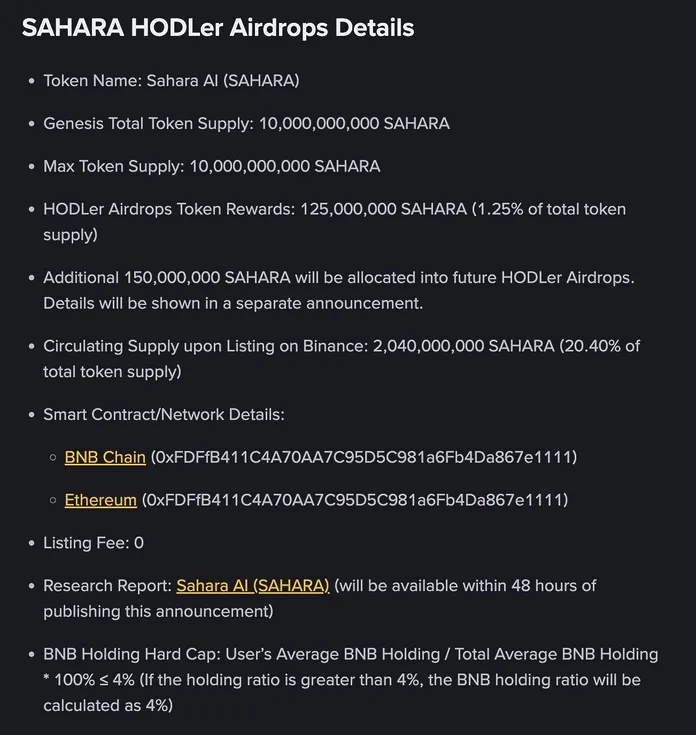 Trong thông báo mới nhất, Binance cho biết Sahara AI (SAHARA) sẽ là dự án thứ 24 trên HODLer Airdrop.