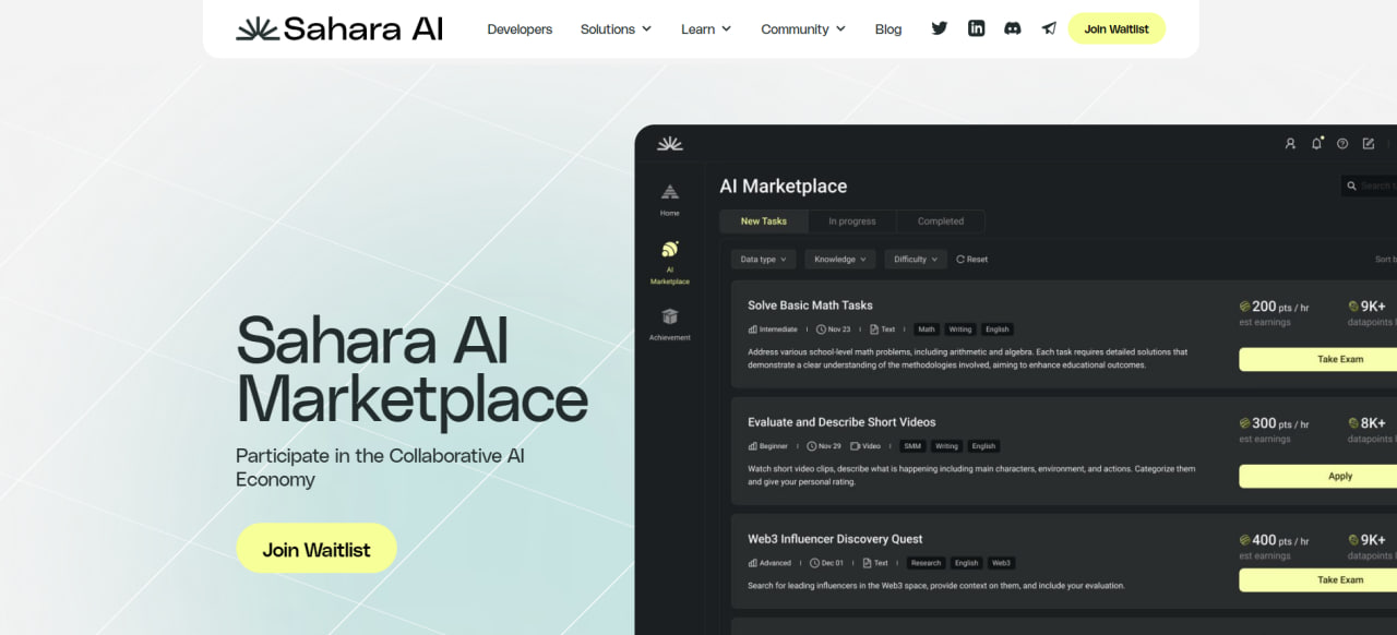 Sahara AI hoạt động như một nền tảng nhiệm vụ AI, nơi người dùng có thể: