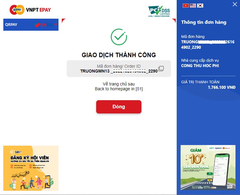 Để thanh toán, phụ huynh cần có tài khoản ngân hàng đã kích hoạt internet banking hoặc ví Điện tử (ZaloPat, Momo, Moca, ShopeePay). Sau đó tiến hành theo hướng dẫn của trang web.